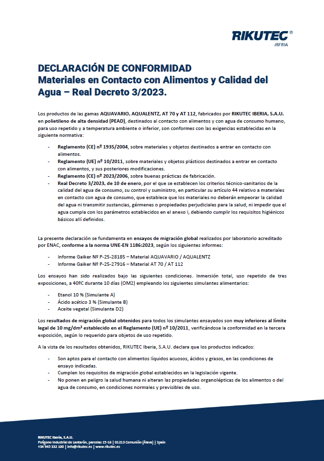 Declaración de conformidad (agua consumo humano)